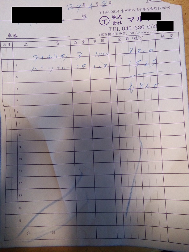 廃バッテリーが1545円って、ちゃんとした値段で売れるんだ!!