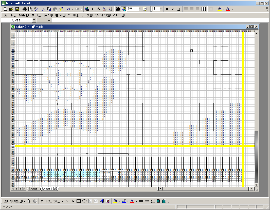 こんな感じでEXCEL使って、ドット単位で書いていった。あ~めんどくさ~