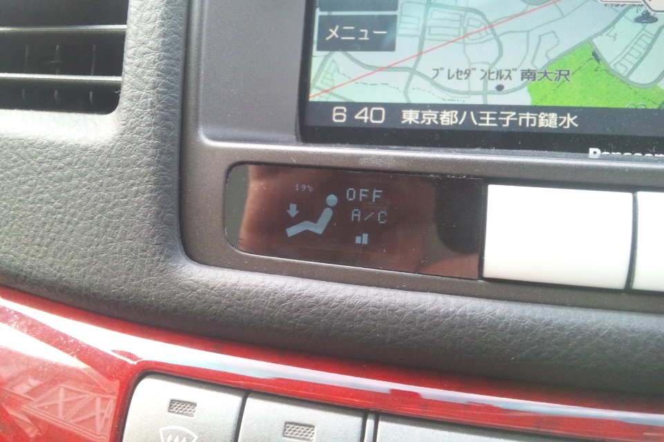 こんな感じ。左上が外気温、OFFになっているところが設定温度、右下が風量。