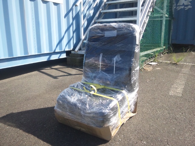 見てのとおり、ヘッドレストを外して(これが送料下げるポイントかな?)シートの上に置いて、ラップでぐるぐる巻きにしたうえ、ダンボールの上に乗せて固定した。持ちやすいように、ダンボールには手を入れる穴をあけて、テープで補強した。