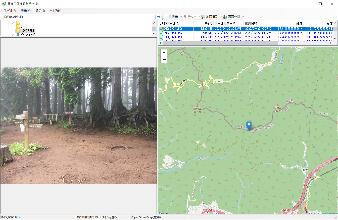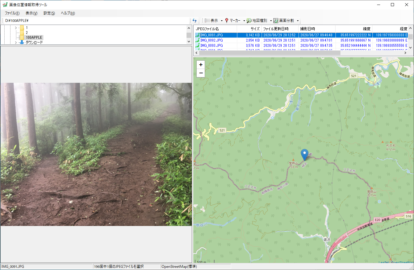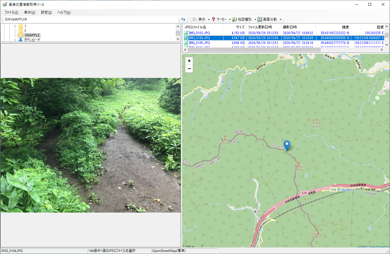 等高線を意識すれば、相模湖駅から明王峠へ登る道がいかに無謀であるかを知ることができる。
