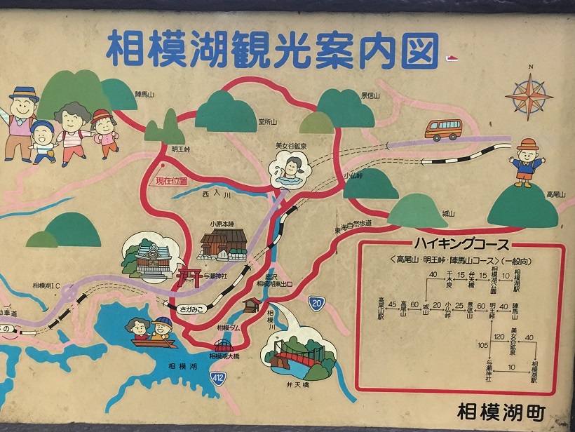 かなり長い時間休憩して、どう下山するか思案していたところ、相模湖観光案内図を発見。