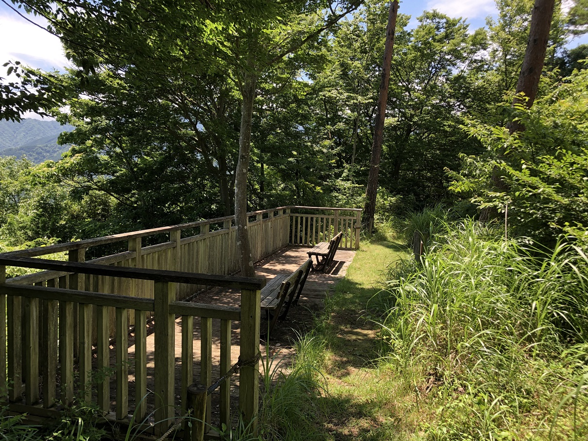ほどなく森の展望台に到着。誰もいないので、座ってのんびり休憩。