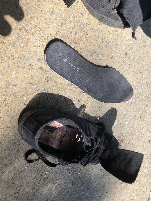 おきにのコンバース(ジェネリック)が終わりました。。。。。靴の中までヒルだらけ。ズボン脱いだら、ふくらはぎに2匹。。。。しばらく太陽に当てて虫干しして、ようやく履ける状態になった。ちなみにコンバース(ジェネリック)は中敷きが紙で出来ているので、洗うと終わる。本物の半額だが、これでは半額の価値もなさそうだ。しかし、今思えば、よくこんな靴で奥高尾を横断できたものだ。