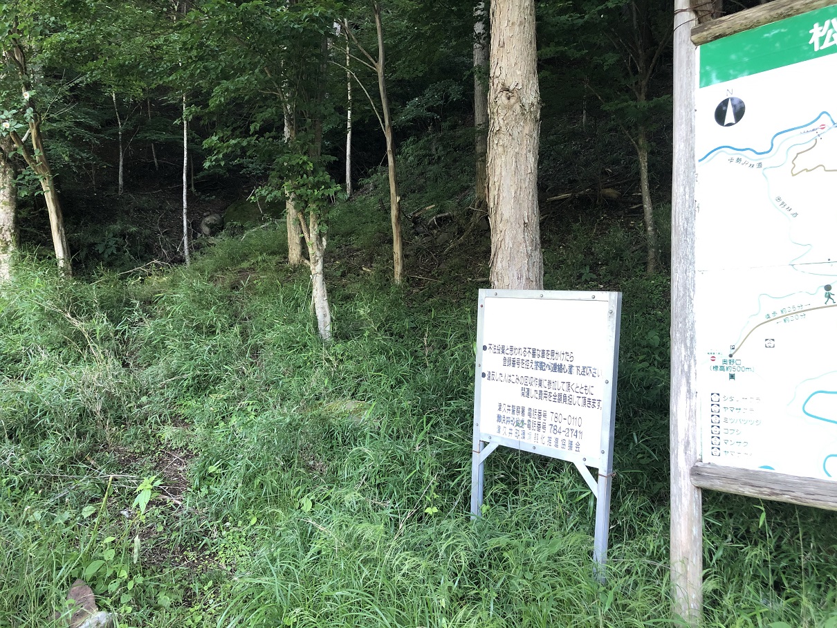 準備運動が終わったので、本日のメインである松茸山の登山口に到着。