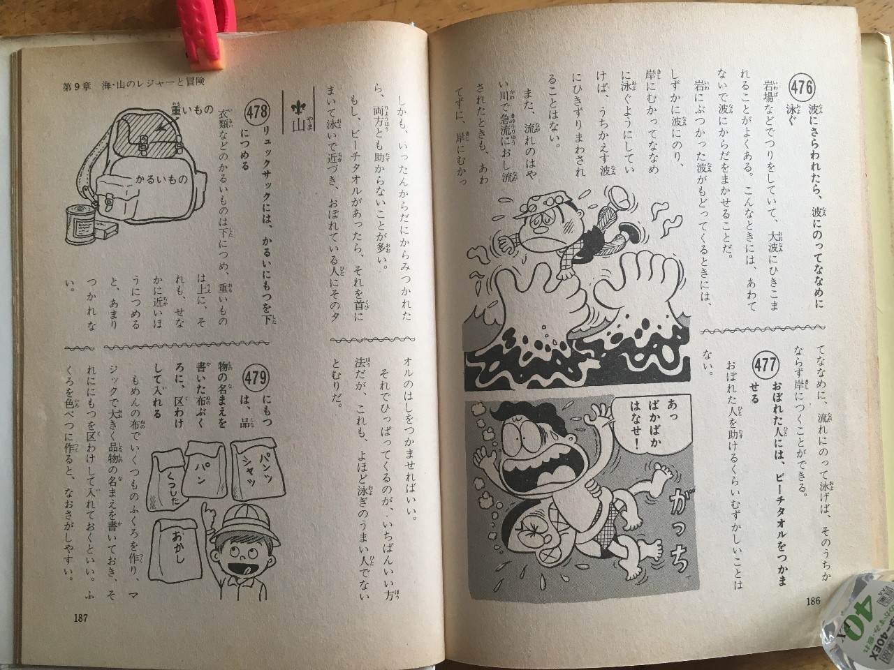 知らないとそん500には、大波に飲み込まれたときの対処方法が書いてある。