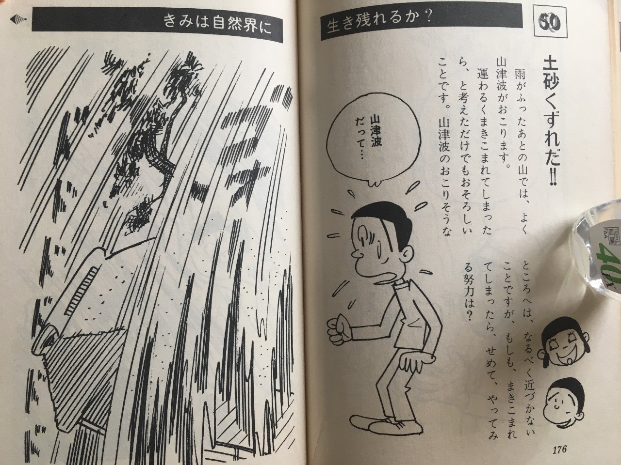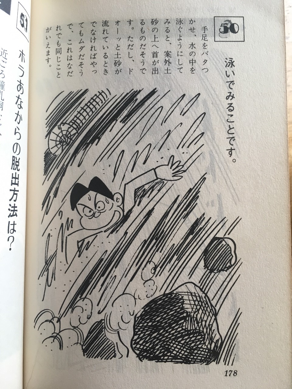 冒険クイズには、土砂崩れに巻き込まれたときの対処方法が書いてある。